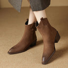 Lifted by a sculpted square heel, these ankle boots blend a structured, pointy profile with a sleek zipper closure and cushioned footbed for polished comfort.