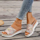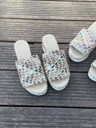 The Elodie sandal brings a splash of color and style to your summer wardrobe. With its woven multicolor design and cushioned sole, it’s perfect for days when you want to feel light, bright, and effortlessly chic.
