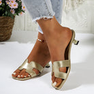 Crafted from vegan leather with a patent shine finish, these slip-on kitten heels have cushioned insole to give you chic comfortable style.