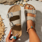 The Adelina sandal is designed for those who want a timeless look with all-day support. With its soft suede straps and adjustable buckles, it gives you the perfect fit while keeping you comfortable wherever the day takes you. Imagine wearing them on casual outings, vacations, or just around town—they’ll be your go-to pair for effortless style and comfort.