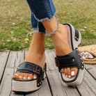 Step into statement style with Bravura. These platform slip-ons turn heads with gold-accented buckles, stud detailing, and a sculpted silhouette that elevates your outfit—and your confidence. Perfect for summer evenings, casual brunches, or anytime your look needs a little lift.