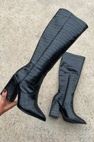 Mila™ Black Croc Knee-High Boots