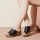 Crafted from premium vegan leather, these slip-on wedges blend clean lines with effortless elevation. The contoured silhouette and sculpted heel offer all-day comfort with a flattering lift that transitions seamlessly from casual to polished.